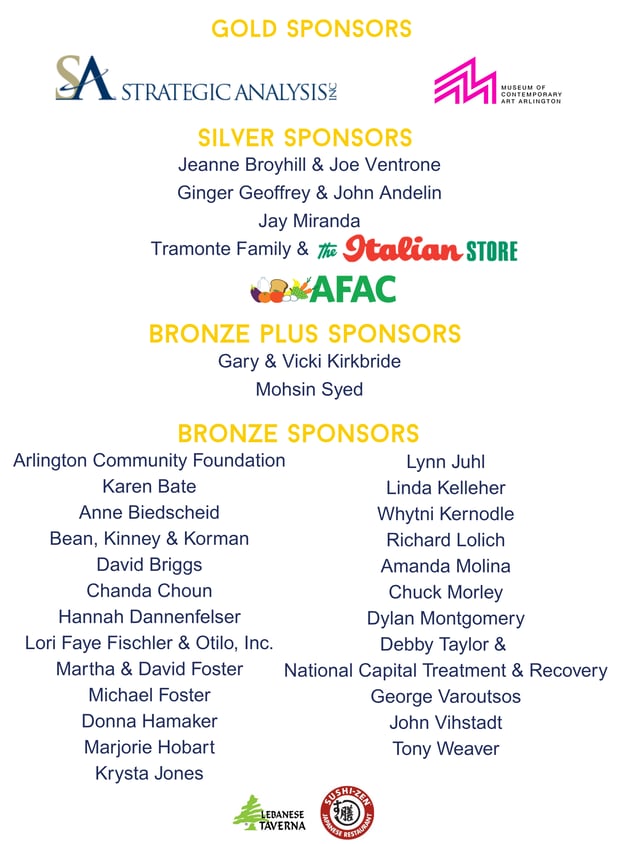 Thank you for your interest in sponsoring Advance Arlington's Second Annual Soiree Celebrating Community Conversations! Please find below detailed information outlining the many benefits available to sponsors of this festive Spring gathering. We truly appreciate your support and look forward to celebrating with you!
