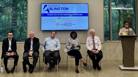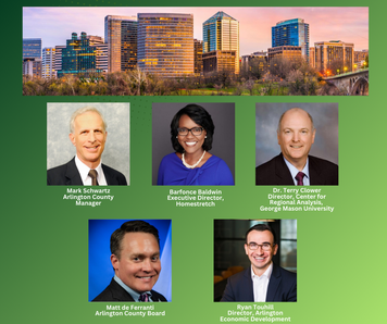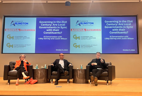 Advance Arlington thanks Agenda Alexandria, George Mason University's Schar School for Policy and Government and Office of Community and Local Government Relations for partnering with us on this special event. We heard from Arlington County Board Chair Libby Garvey and Alexandria City Mayor Justin Wilson as they prepare to step away from public office. Thank you to Alan Abramson for introducing the discussion and to Michael Pope for skillfully moderating the conversation, which encompassed the following topics: