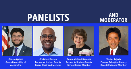 We were thrilled to hear from our School Board candidates, Kathleen Clark, James Vell Rives, Zuraya Tapia-Hadley, and Paul Weiss and County Board candidates, Audrey Clement, Juan Carlos Fierro, Madison Granger, and JD Spain, Sr. Thank you to our moderators, Karina Elwood of The Washington Post, and Jay Fisette, former Arlington County Board Chair and Member who facilitated an engaging and comprehensive debate on local issues.